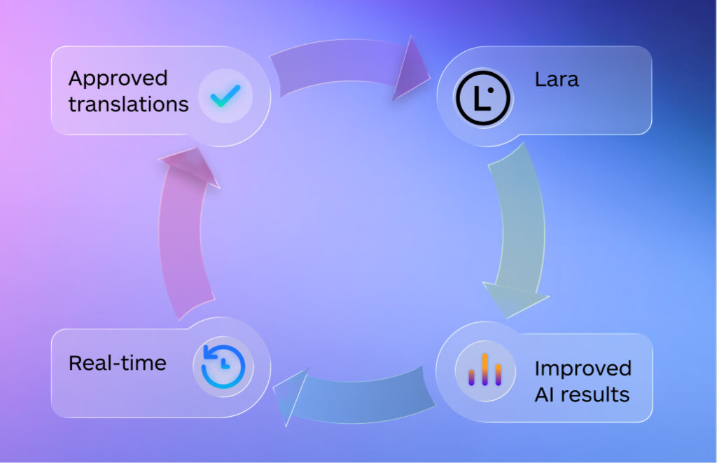 Lara adapts in real time from approved translations, terminology, and instructions to deliver stable, predictable, context-aware translation quality across 200+ languages.