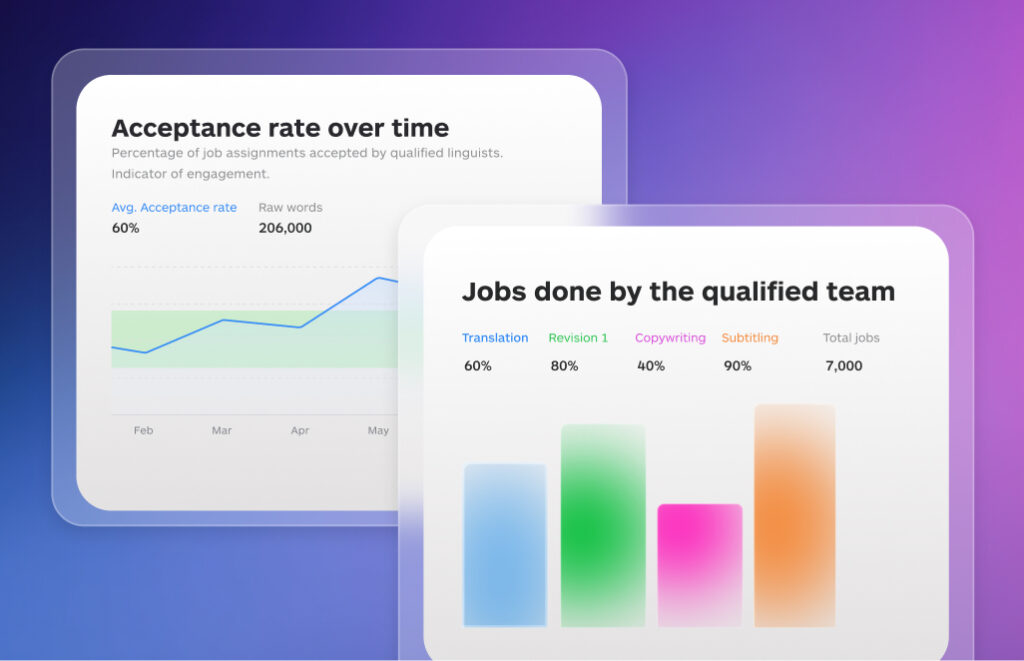 Run AI-driven localization as a governed operation. Use service types to match workflows to content risk, keep terminology consistent with shared assets, and track progress, quality signals, and spend in one place. As approvals accumulate, Lara adapts, and editing effort drops over time.